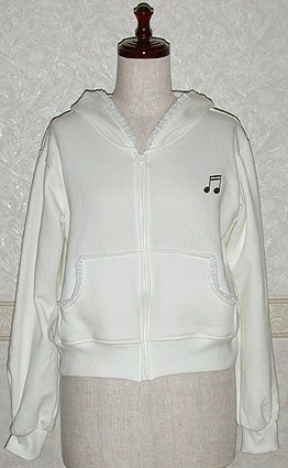 音符刺繍のレース付フリルフードパーカー