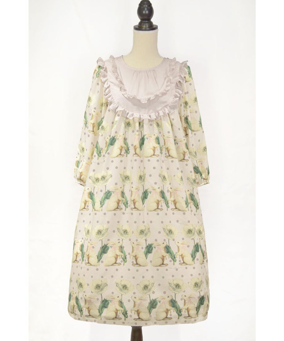 うさぎポピープリントヨーク切り替えワンピース