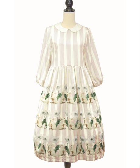 うさぎポピーストライプ衿付きワンピース