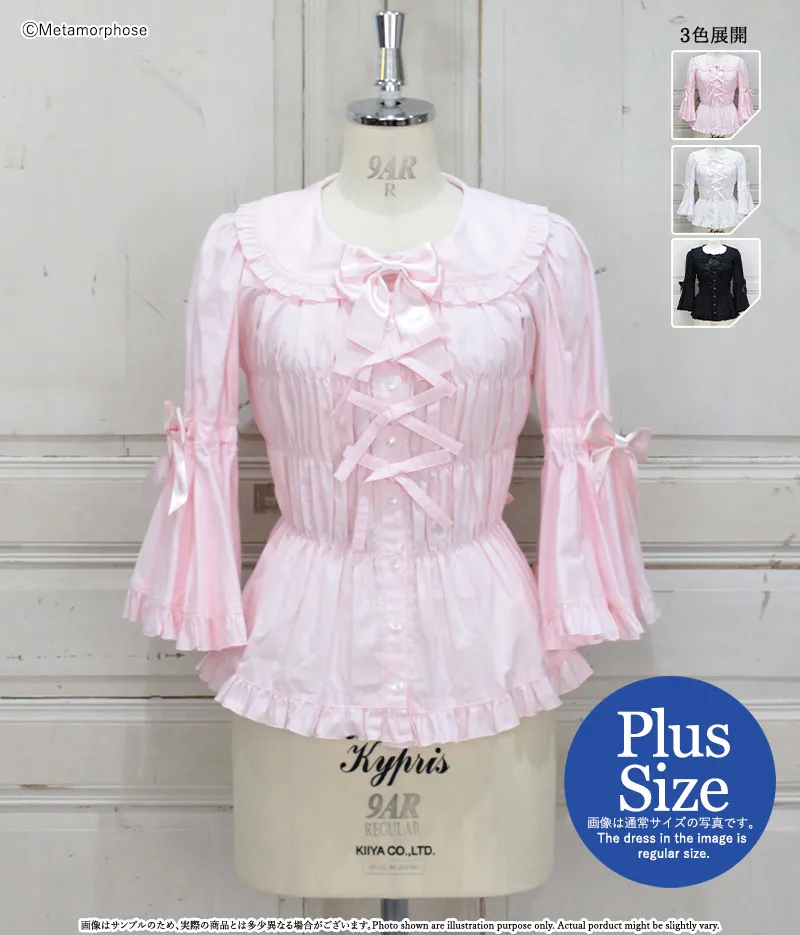 丸襟姫袖ブラウス【プラスサイズ】