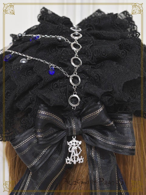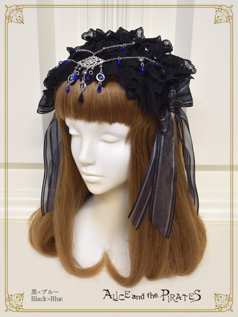 Captain Chrisが迷い込んだ深い深い海の深淵…幻想的な深海の魔女達の宴をテーマにした、クリスタルやデザインチェーン、サイドにあしらわれた二重のルーシッドリボンが煌びやかな印象のヘッドドレスカチューシャです。