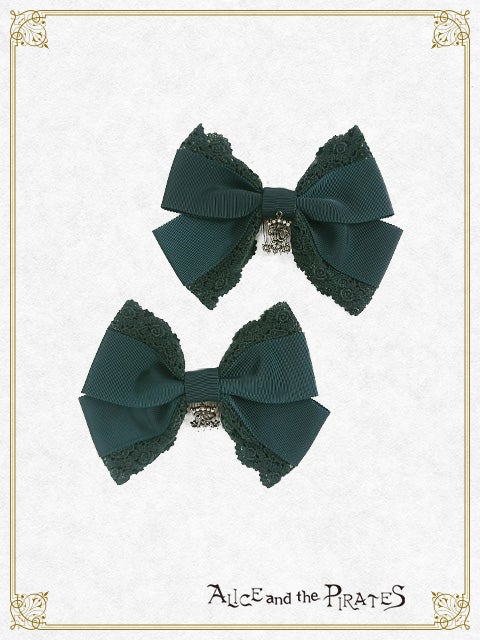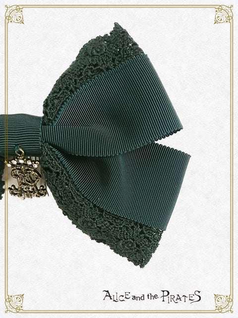 -dark green ribbon x green lace