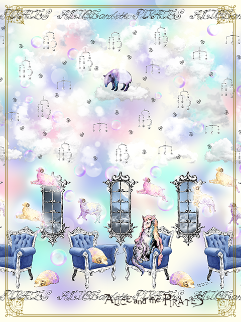 バクのプリント部分を使用し、カーテンのような飾りが付いた