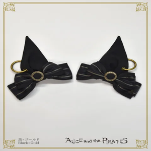 別生地を重ねたおリボン飾りや鋭角のシェイプ、エジプシャンな世界観を表現したピアス風リングパーツが特徴的な2個1組のクリップセットは