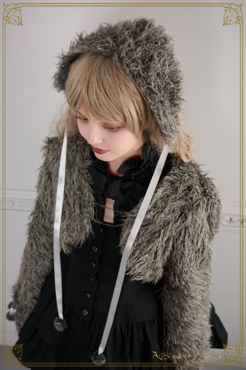 もけもけとした獣感のある質感が特徴的なヴィンテージファーを使用したイヤーマフ風のヘッドドレスは、耳まで隠れるボリューム感がポイント!