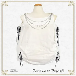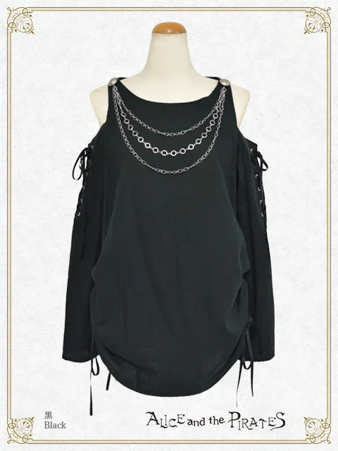 The chain decoration on the chest is removable, and the open shoulder design and lace-up ribbon on the sleeves are also highlights.