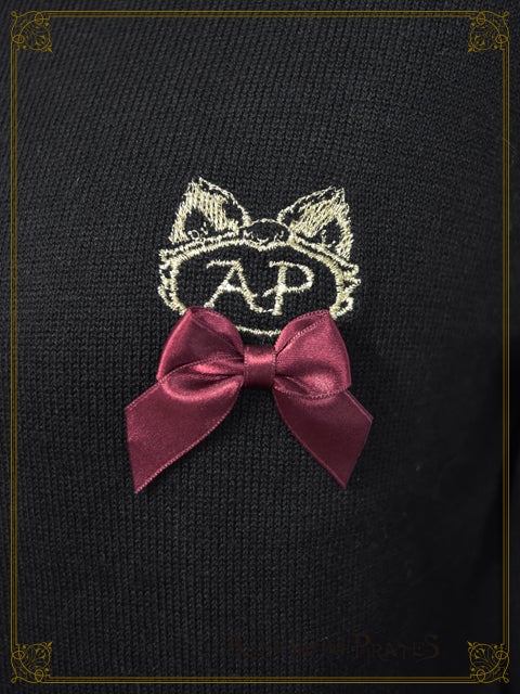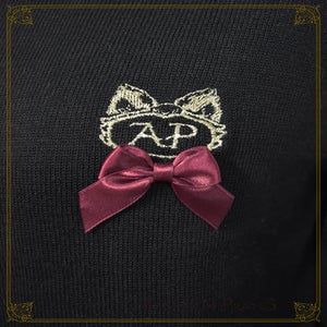 -black x gold embroidery x red ribbon