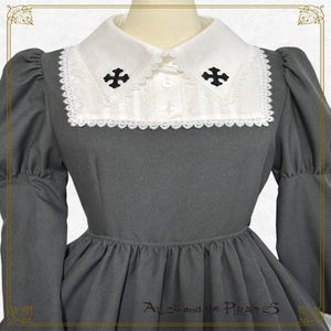 衿にあしらわれた十字架ワッペンがポイントのシスター風のワンピースです。