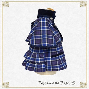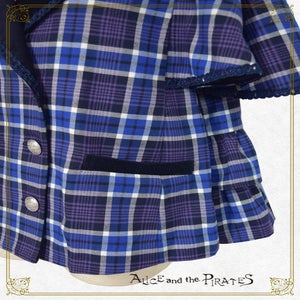 -blue x navy corduroy x silver buttons/hardware x navy ribbon/braid