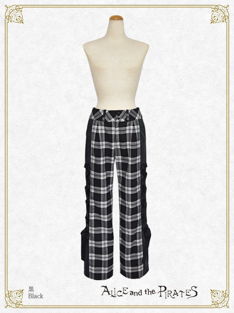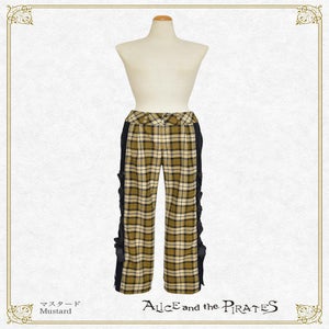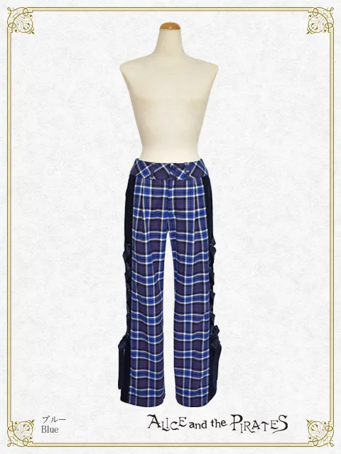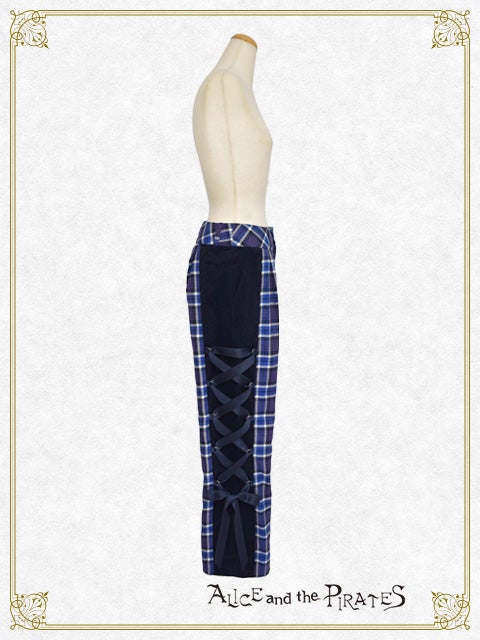 The combination with cordory adds to the seasonal feel of the long pants, which feature ribbons on the sides; but the ribbons' colors match the cordoroy and the eyelets give them a cool look.