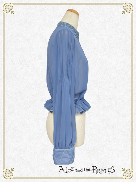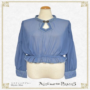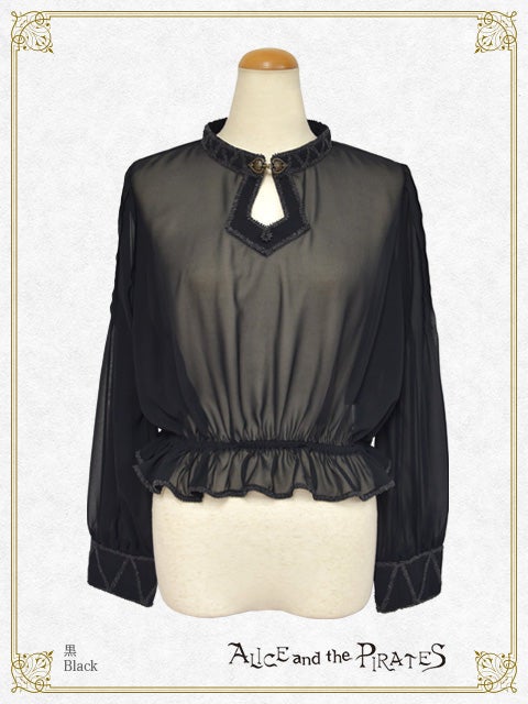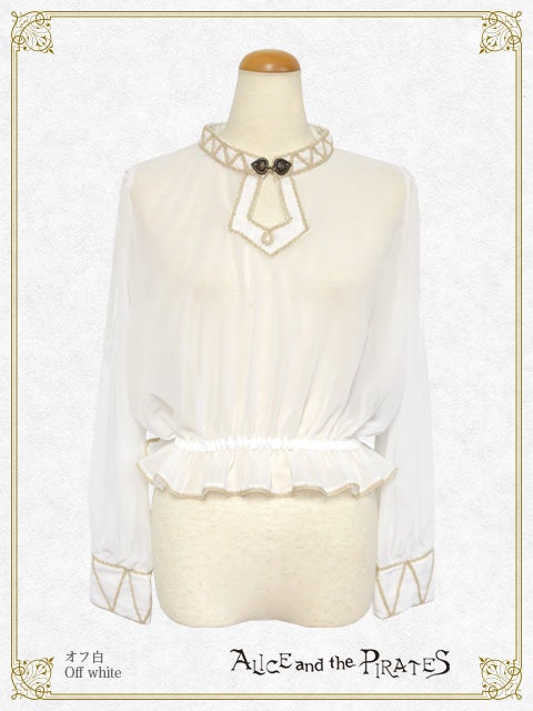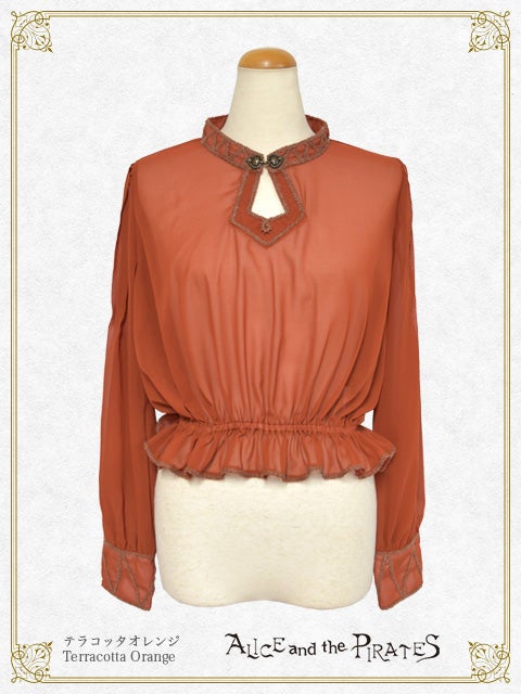 シフォン素材を使用し、首元やカフスに幻想的なブレードを施したプルオーバーはまるでエジプトの踊り子のよう…。