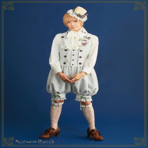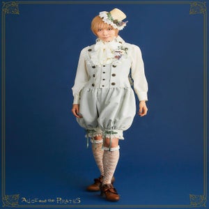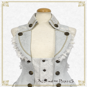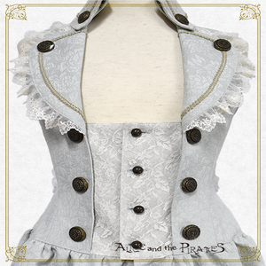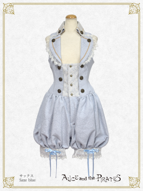 -sax blue x antique gold buttons x ivory lace x beige braid x sax blue ribbon