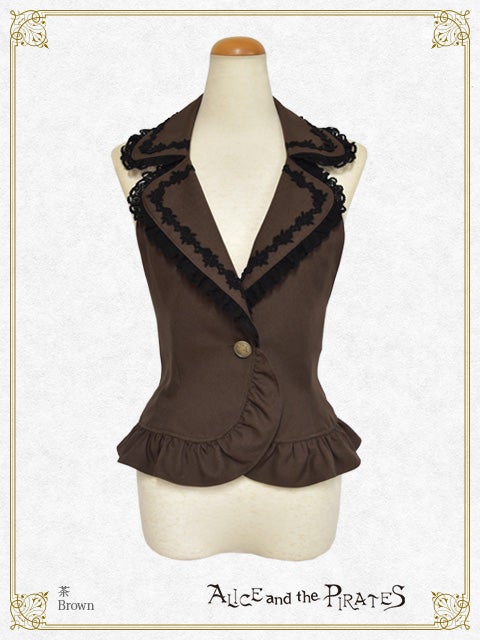 スカートスタイル・パンツスタイル問わず、コーディネートしやすいカフェベストです。