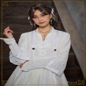 レースワンピースの深いV字開きの首元に映えるネックレスです。