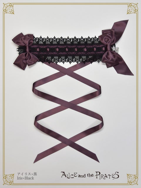 -iris x black lace x iris satin ribbon x silver A/P charm