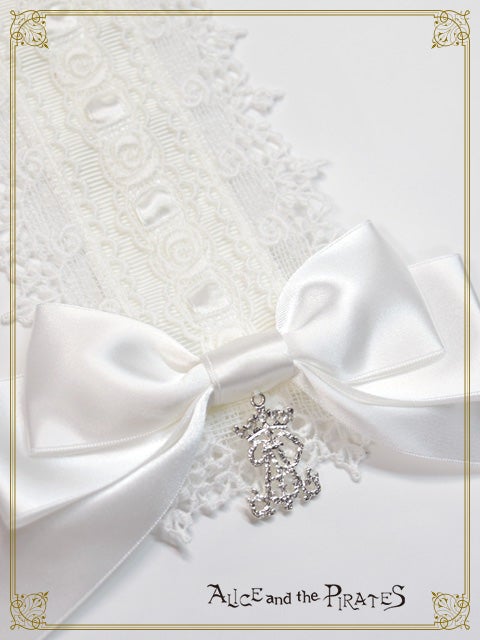 -white x white lace x white satin ribbon x silver A/P charm