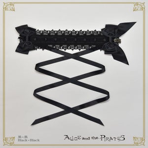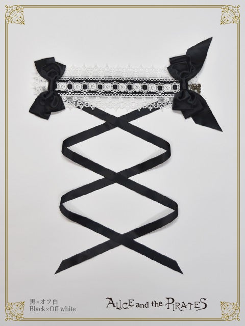 -black x white lace x black satin ribbon x antique gold A/P charm