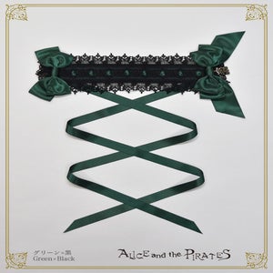 -green x black lace x green satin ribbon x antique gold A/P charm