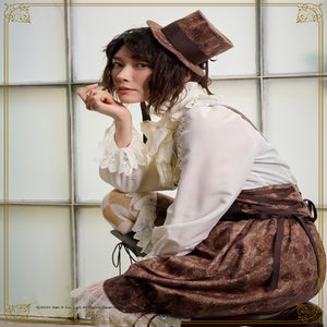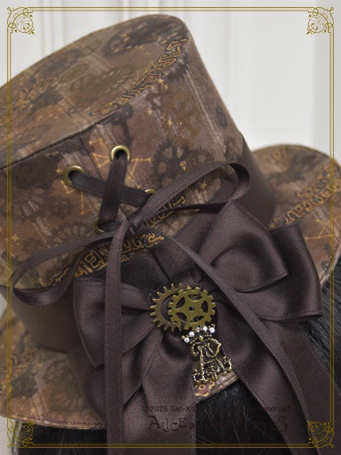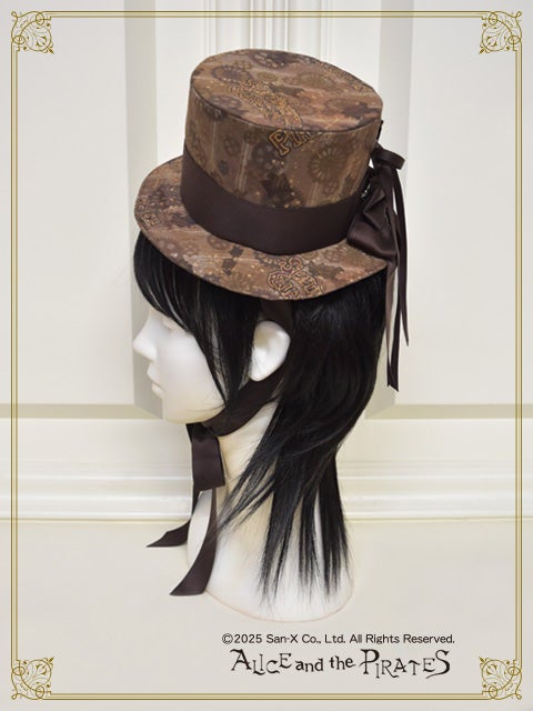 「Sentimental Circus」の世界観をイメージソースにツギハギ風のおリボンをあしらったミニハットはかっちりとしたシルエットと、歯車チャーム&PIRATESオリジナルチャームがあしらわれたお取り外し可能なおリボン飾りがポイントです。