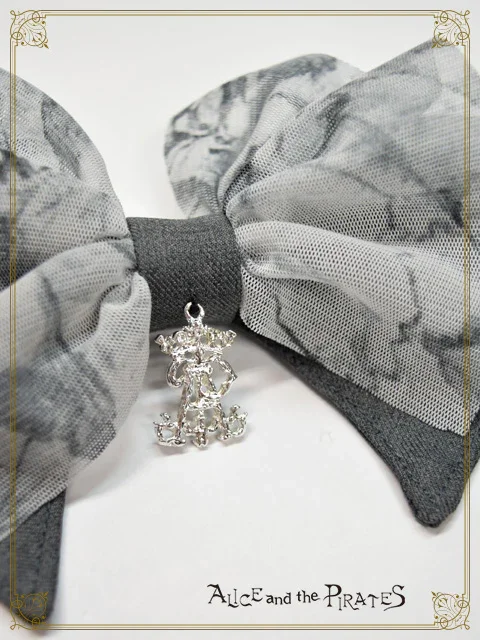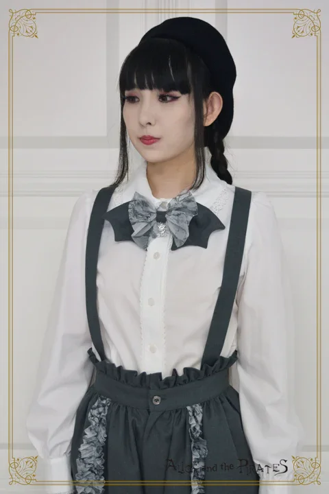中央には大理石風の柄のネットフリルをリボン型にあしらい、シリーズで合わせたコーディネートの他、単体でもブラウスの衿元のポイントとして活躍します♪