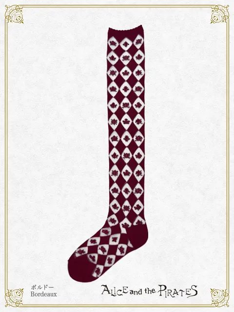 -A/P Stripe Logo Seal OTKs (in white) or A/P Royal Diamond See-through OTKs (in wine)