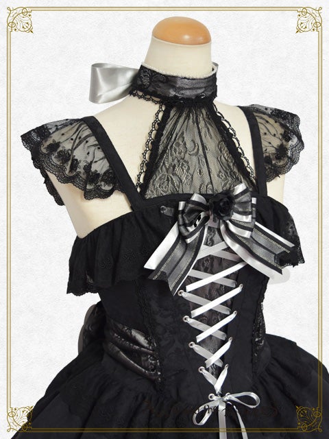 -black x silver x black lace x silver/black ribbon x black roses
