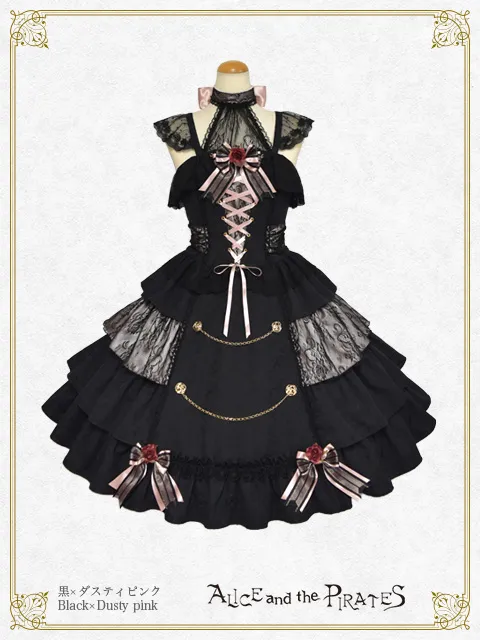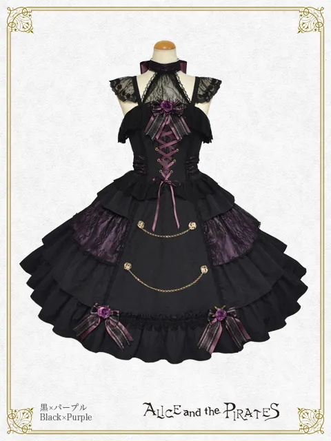 重厚感のあるジャカード生地にサテン、レース地を組み合わせたPIRATES定番のジャンパースカートと、