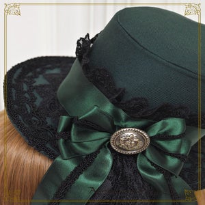 -green x black lace x green ribbon x black braid x antique gold button
