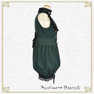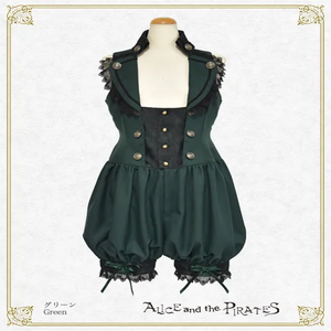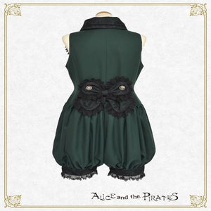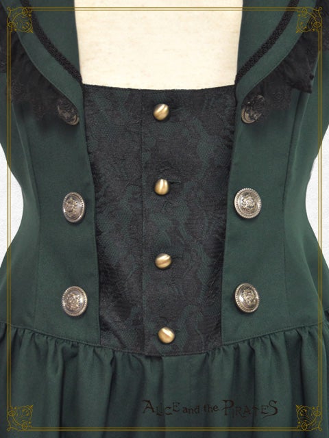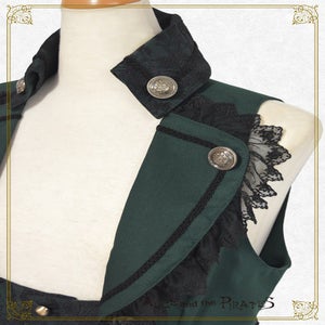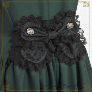 -green x black lace x green ribbon x black braid x antique gold buttons