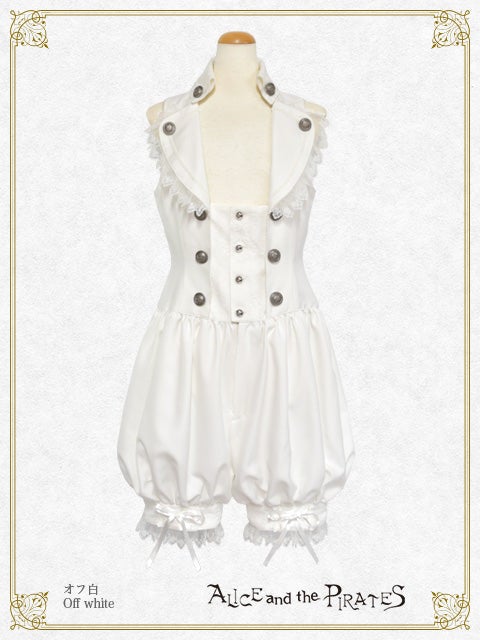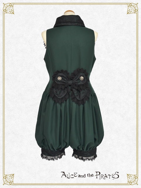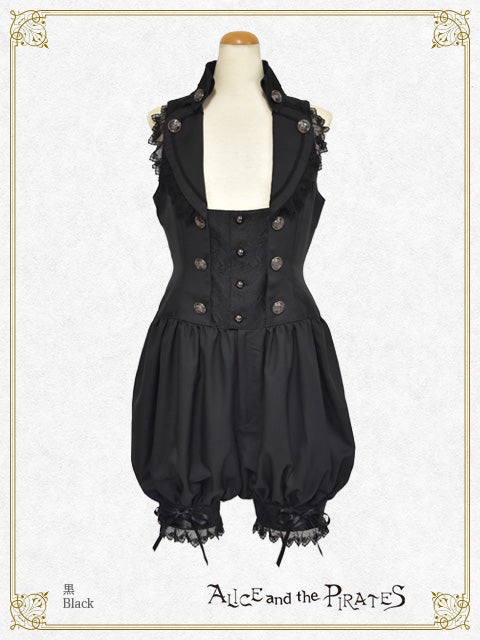 This salopette is subtly glamorous with lace around the collar and hem and layered lace details.