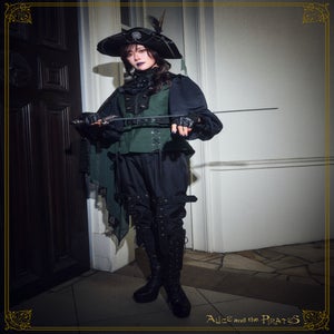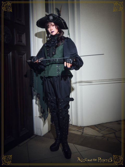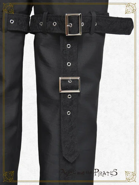 These long pants feature a belt decoration made of layered lace that runs from above the knee to the hem, and the double buckle belt at the waist adds a subtle accent; making them look like a noble knight fighting proudly...