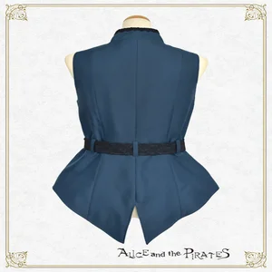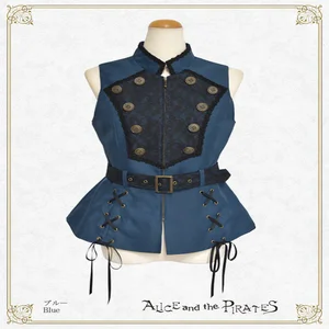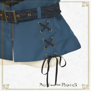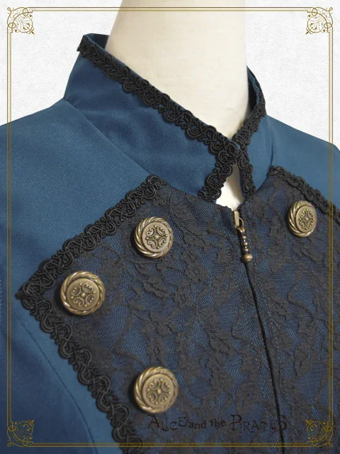 -blue x black lace x antique gold metal fittings/buttons x black ribbon