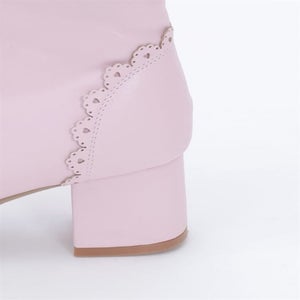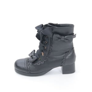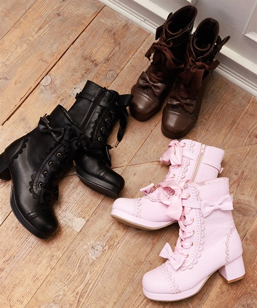 A cute design with subtle heart-shaped punch-outs. These boots are the perfect complement to Chalmiere's outfits, featuring plenty of lace-up and ribbon details. In addition to the classic brown and black colors, we've also added a pink that's perfect for pastel outfits! The zippers on the inner sides makes them easy to put on and take off.