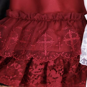オリジナルの十字架モチーフのチュールレースにはChalmiereのロゴ入りになっています。レース生地フリルと2段重ねになったボリュームたっぷりなフリルがポイントです。