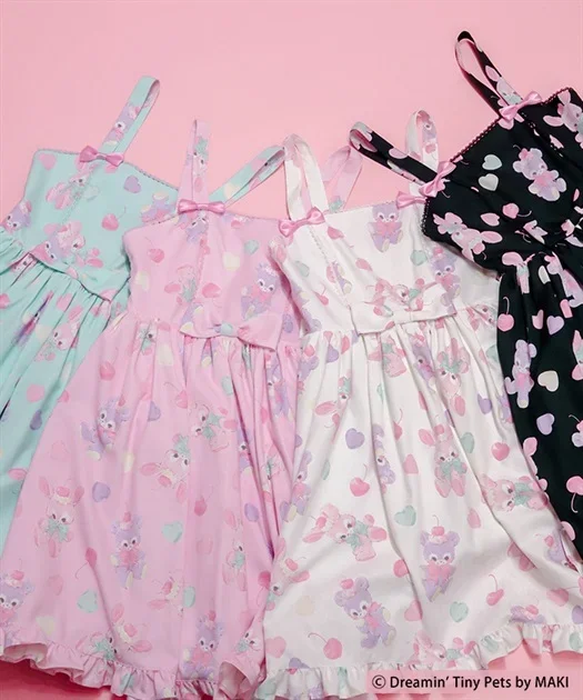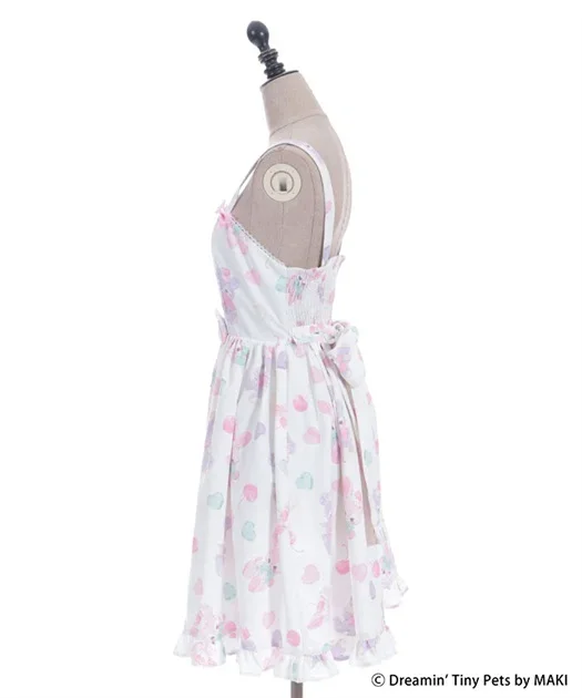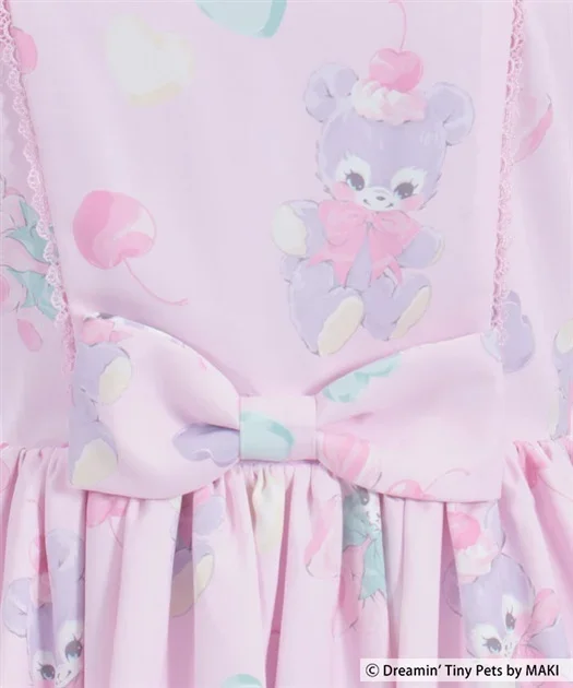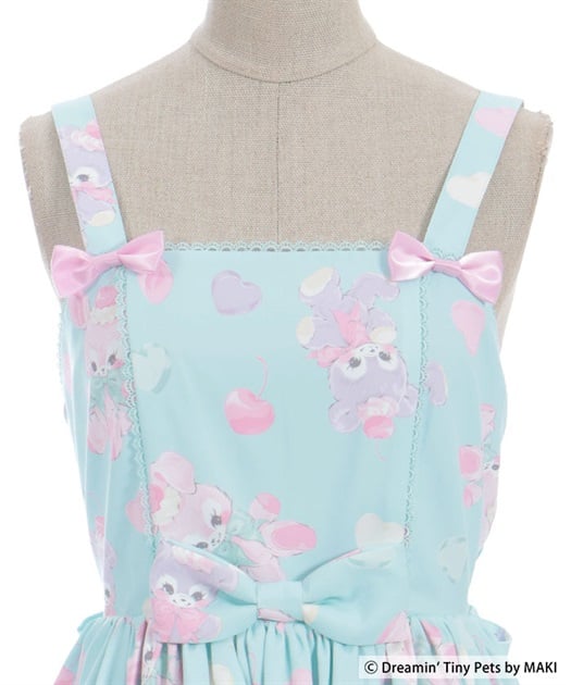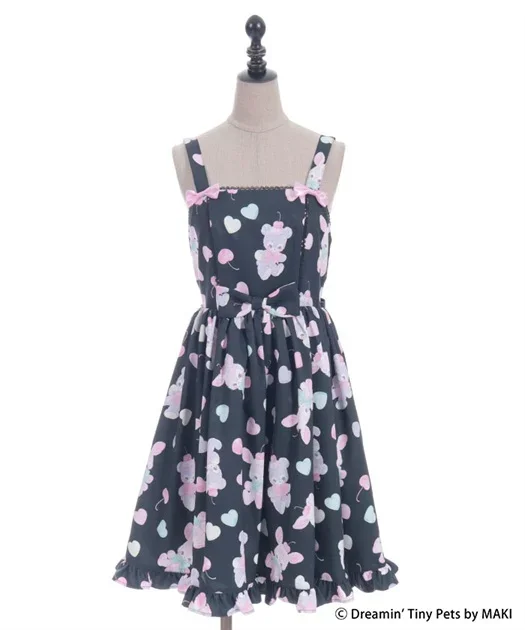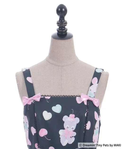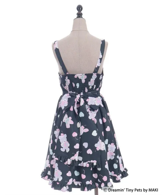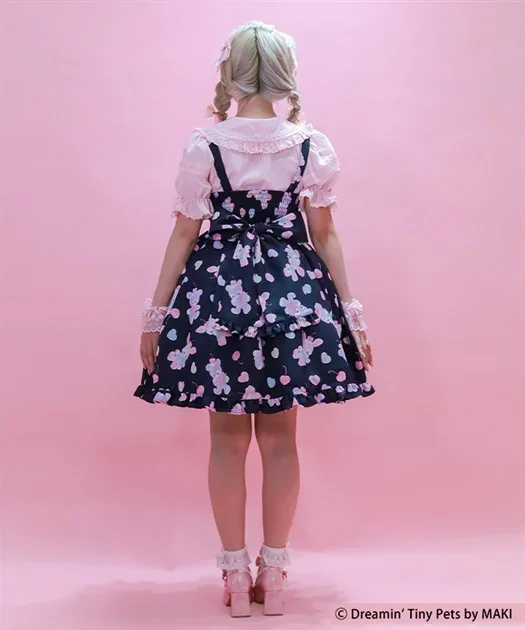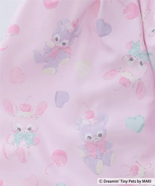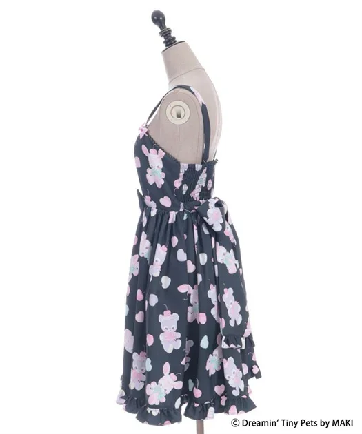 [Brand comment] A special collaboration item featuring a new illustration by illustrator MAKI is now available! This jumper skirt uses illustrations newly drawn by MAKI. Fancy and cute original print with plush bears, rabbits, cherries and sugar hearts. The hem is decorated with ruffles for a cute design. The simple bodice design makes it easy to match with a variety of blouses. The material can be worn throughout the year.