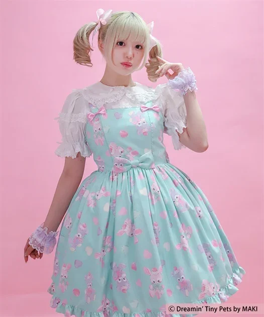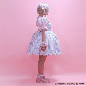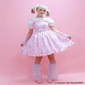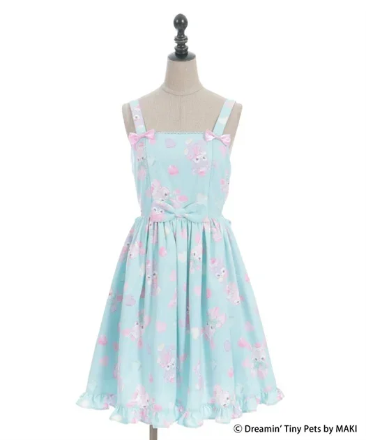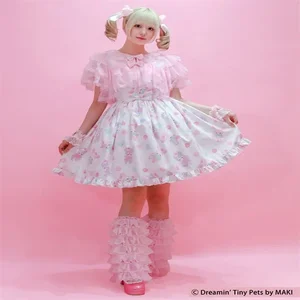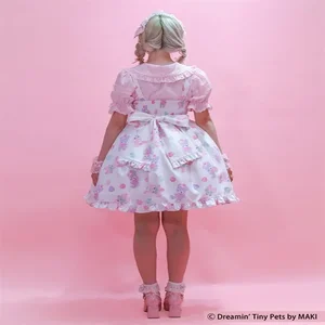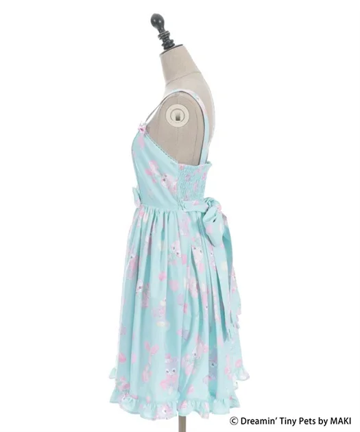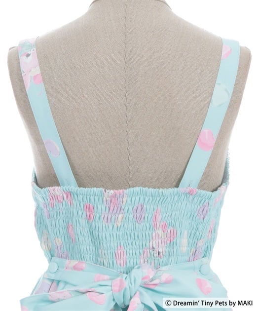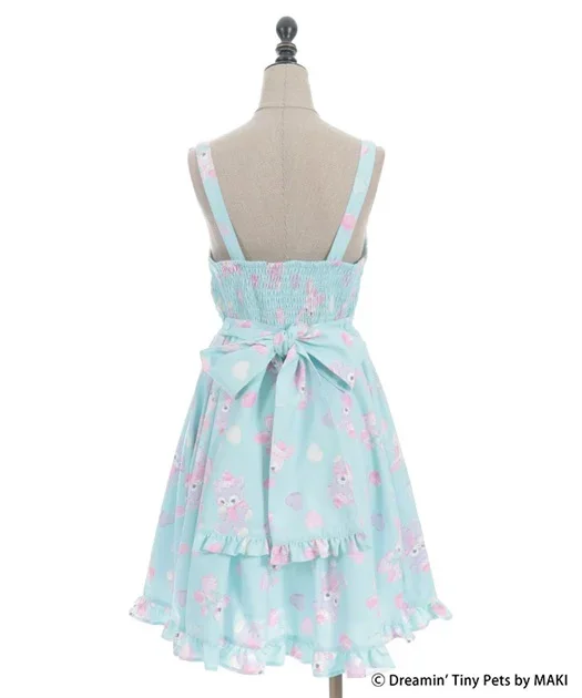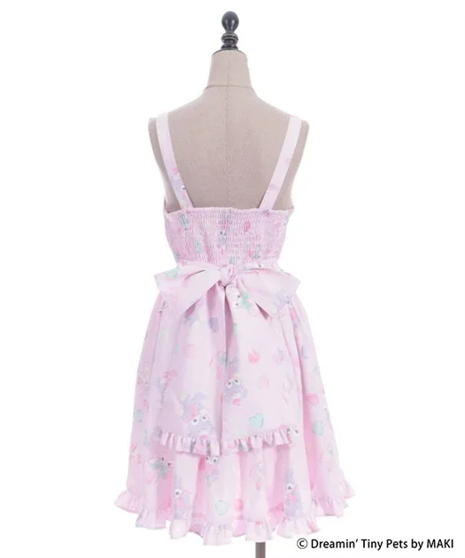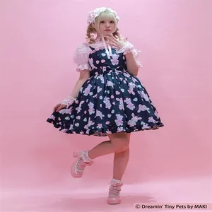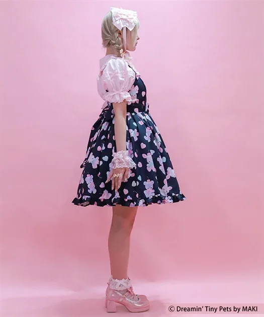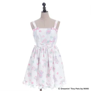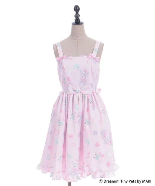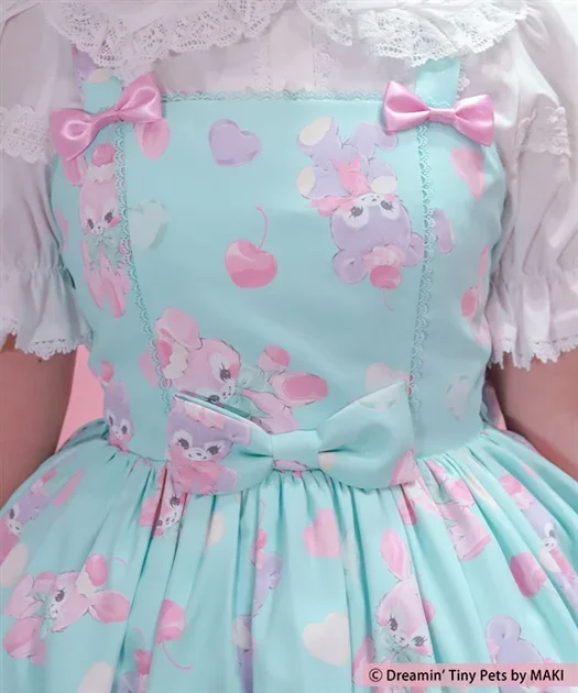 [Brand comment] A special collaboration item featuring a new illustration by illustrator MAKI is now available! This jumper skirt uses illustrations newly drawn by MAKI. Fancy and cute original print with plush bears, rabbits, cherries and sugar hearts. The hem is decorated with ruffles for a cute design. The simple bodice design makes it easy to match with a variety of blouses. The material can be worn throughout the year.
