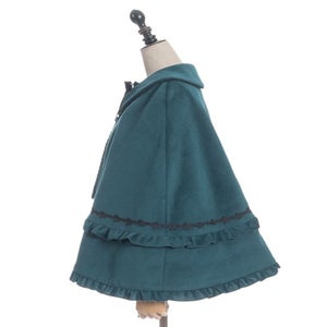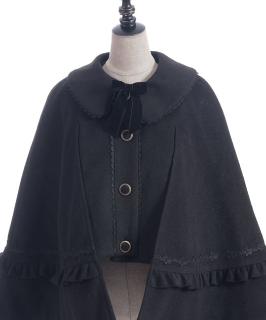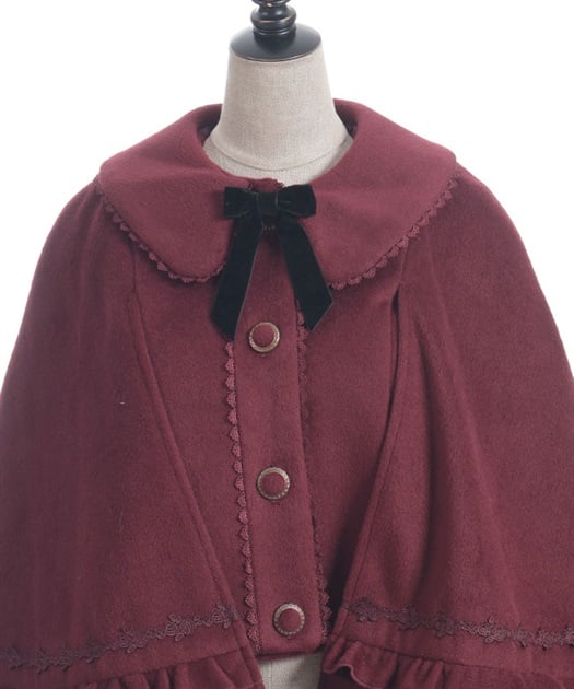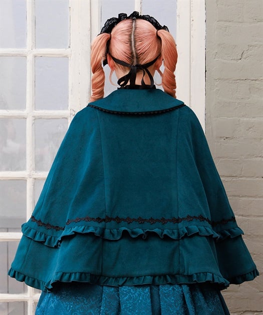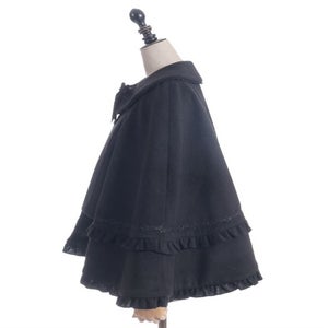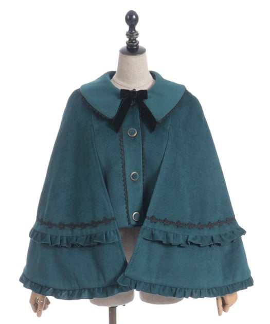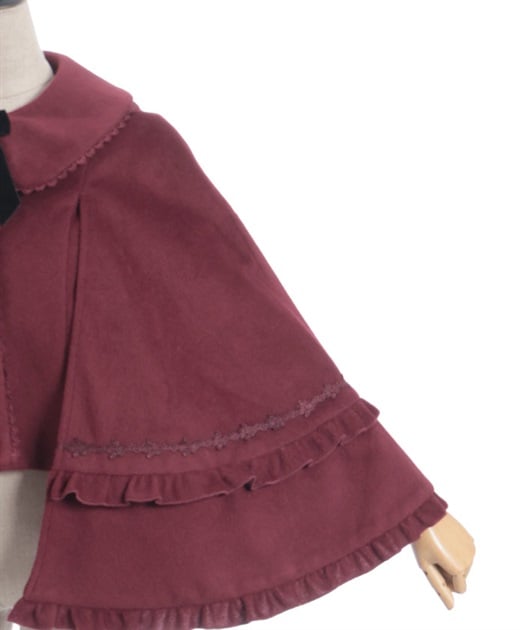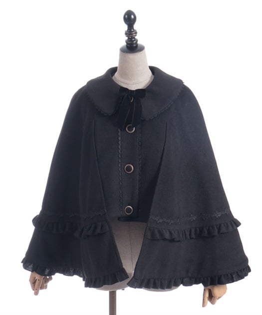 ゴシック系からクラシカル系まで合わせやすいケープコートです。シャルミエールのお洋服に合わせた丈感になっています。