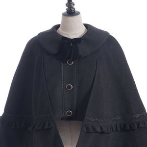 This cape coat is easy to coordinate with styles ranging from gothic to classical. The length is tailored to match Chalmiere's outfits.