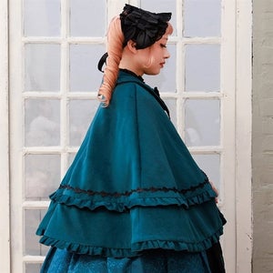 This coat is designed like a cape attached to a vest-like bodice. Note that the cape is not detachable.