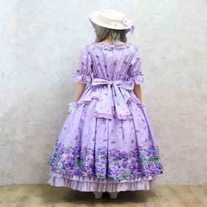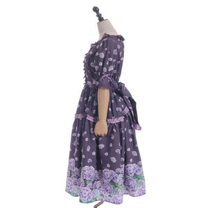 絵画タッチの紫陽花柄がクラシカルで可愛い半袖ワンピースです。