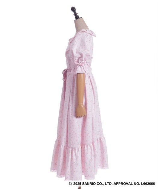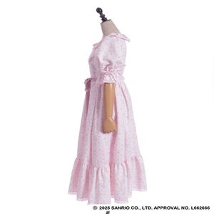 This long-length dress features adorable, fluffy puff sleeves. The cotton lace accents add a touch of charm. The back waist is elastic, and the center front button closure makes it easy to put on and take off. The waist ribbon is removable.