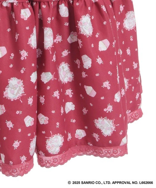 40周年を迎えたマロンクリームとのスペシャルコラボレーションアイテムです。マロンクリームちゃんの特技であるお菓子作りのアートを使用したワンピースです。