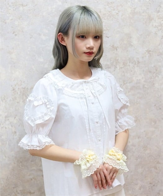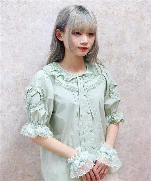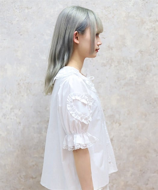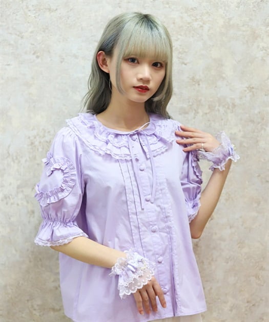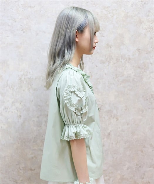 ハートフリルパフ袖ブラウス