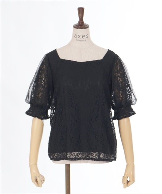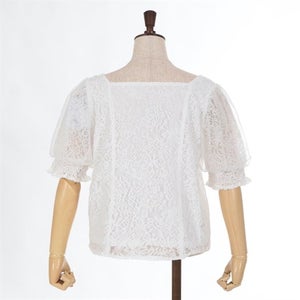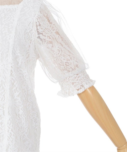 袖にはソフトチュールを重ね、フェミニンなパフスリーブに。ガーリー過ぎず繊細な透け感が上品な印象になります。