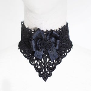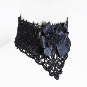 This gorgeous and adorable choker is made of ladder lace threaded with organza ribbon, decorated with rose motif lace and ribbons.