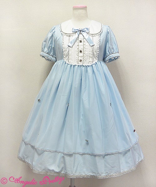 [Material] body: Cotton satin (100% cotton) Different fabrics:Soft tulle (100% polyester) [Lace] Silver lace [Other] Satin ribbon. Silver star buttons. Chest ribbon brooch is detachable. Buttons on cuffs.