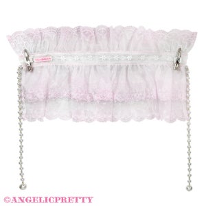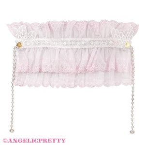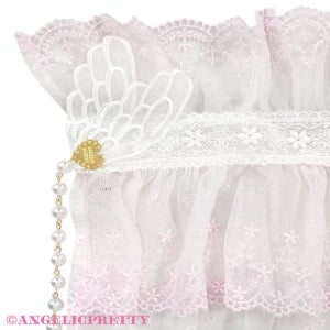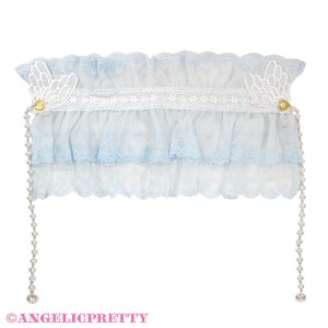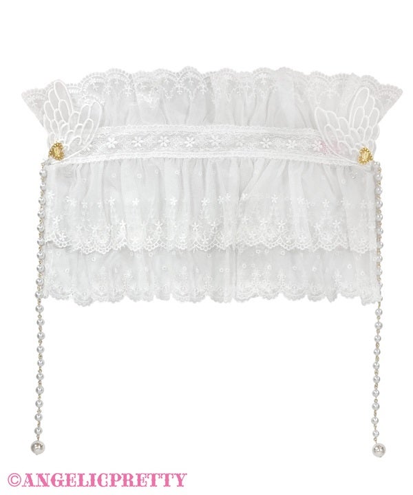 透け感のあるオリジナル羽根ワッペンと、歩くたびに揺れるパールチェーンがポイント。