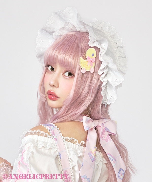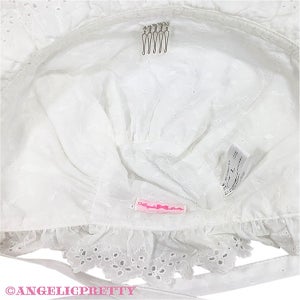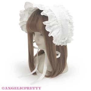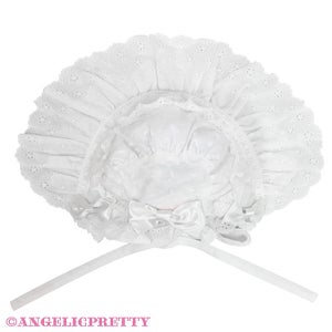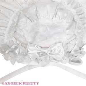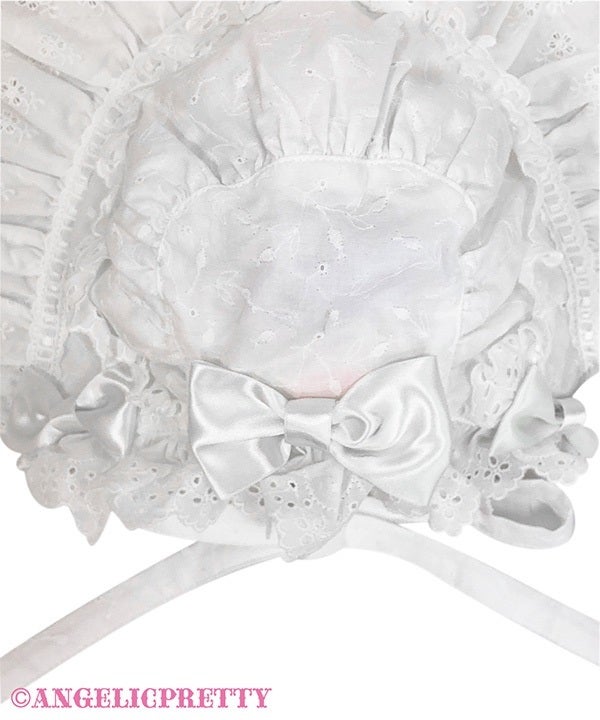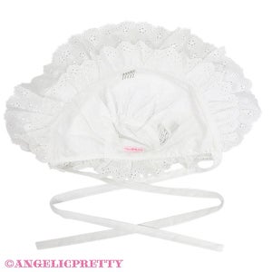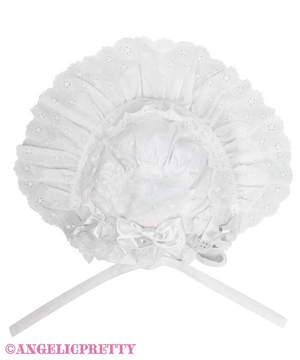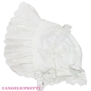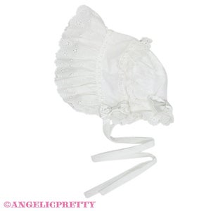 A bonnet wrapped in pure white cotton lace that gently dresses up the face.