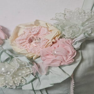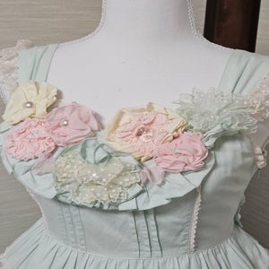 ♥Material♥ •Body:Broadcloth (100% cotton) ♥Lace♥ •Tulle Lace •Torsion Lace ♥Other♥ •Satin Ribbon •Partial shirring offers limited ease of fitting.