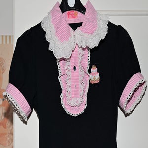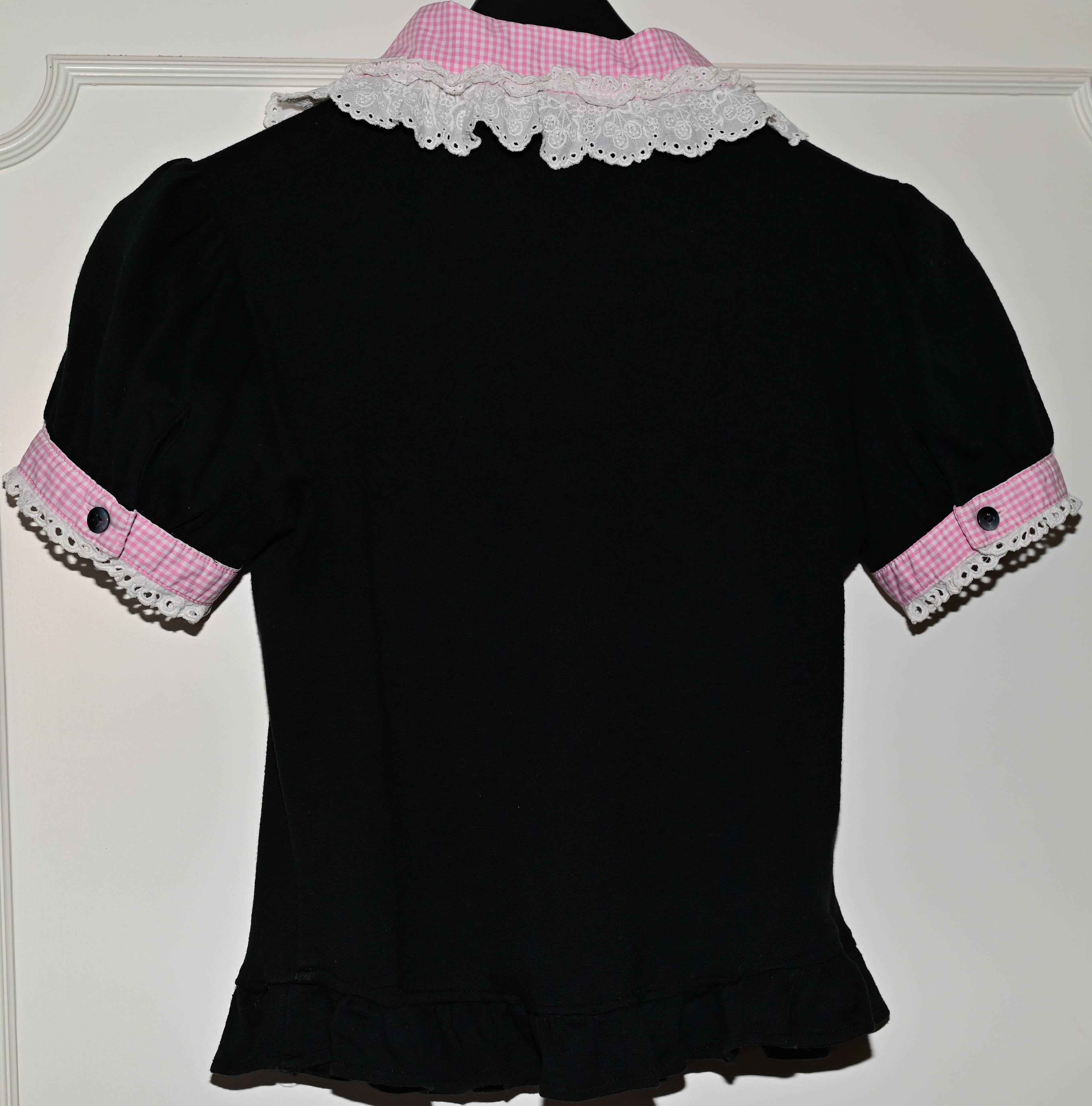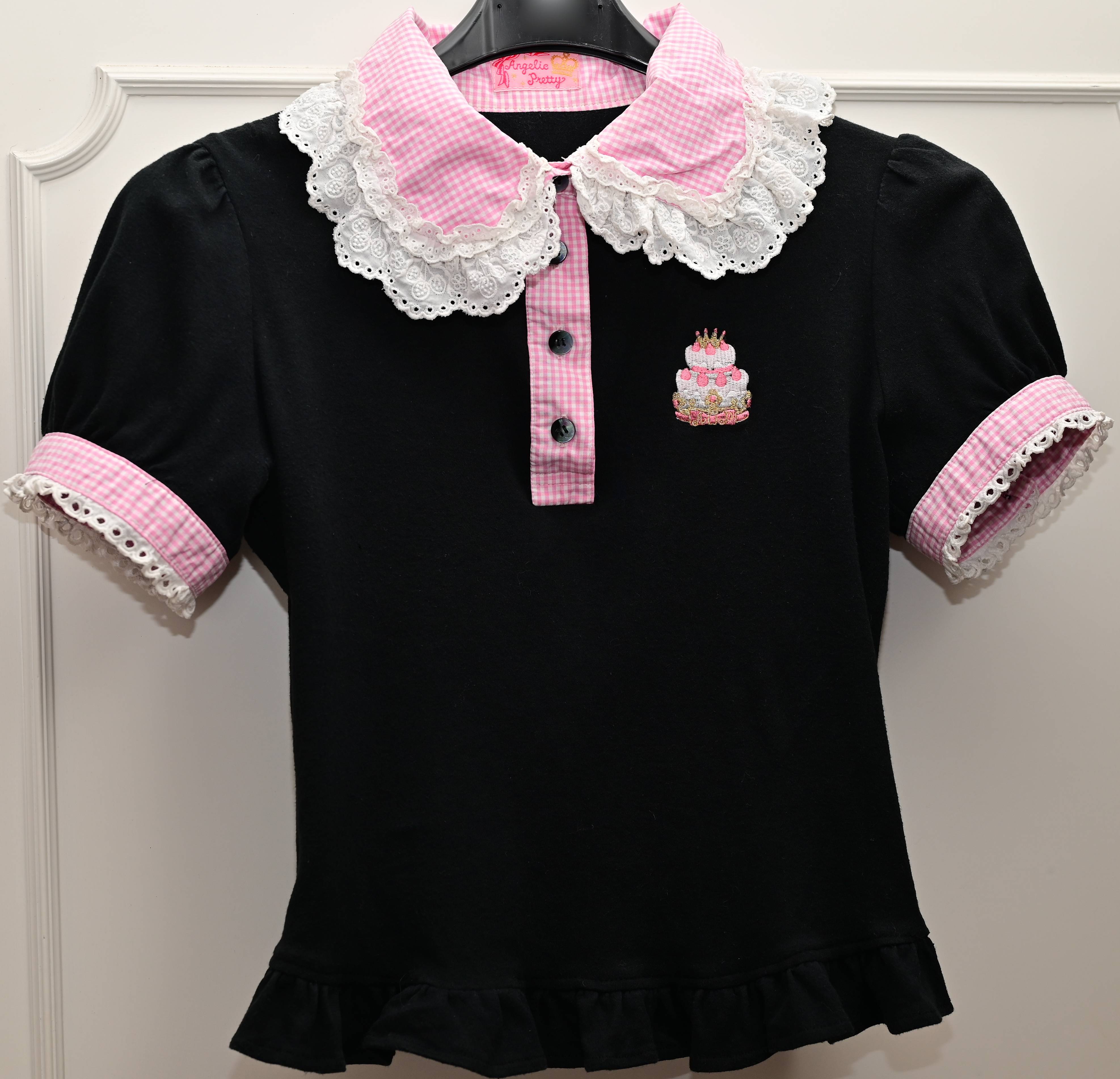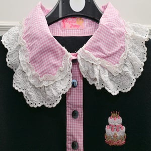[Design notes] Trimmed with cotton lace with heart and strawberry motifs.